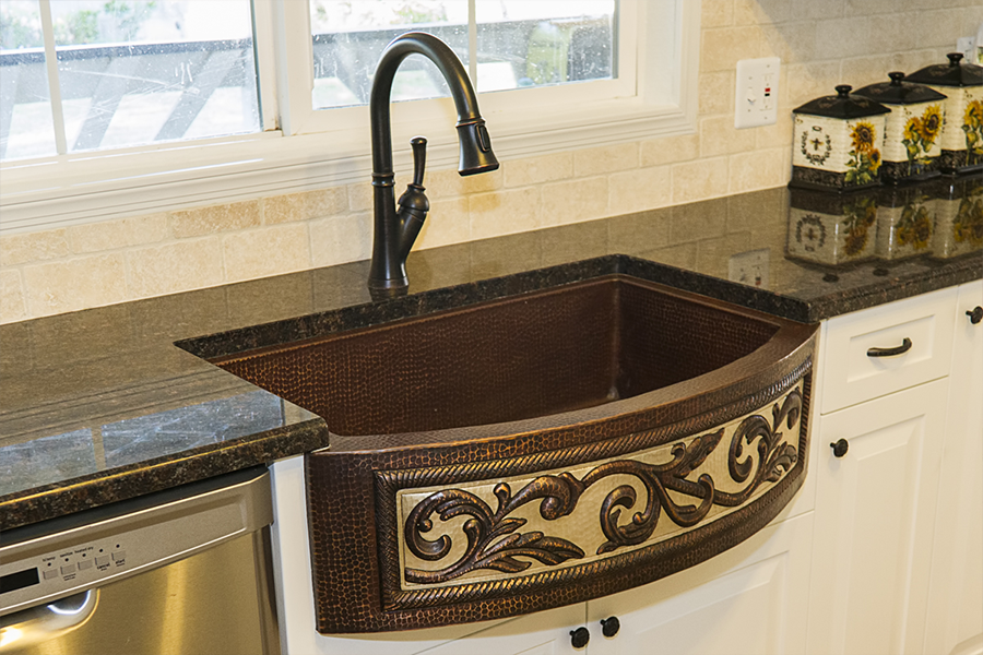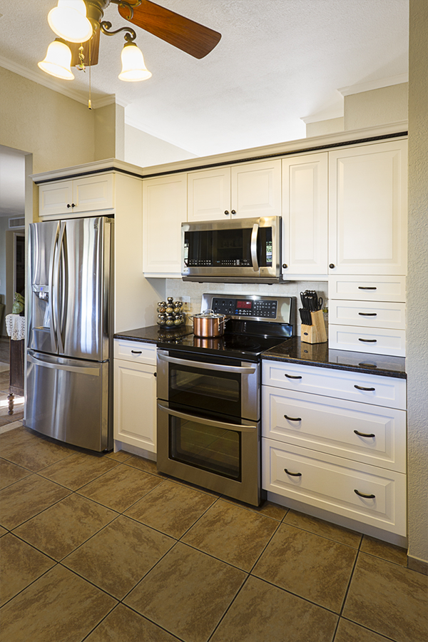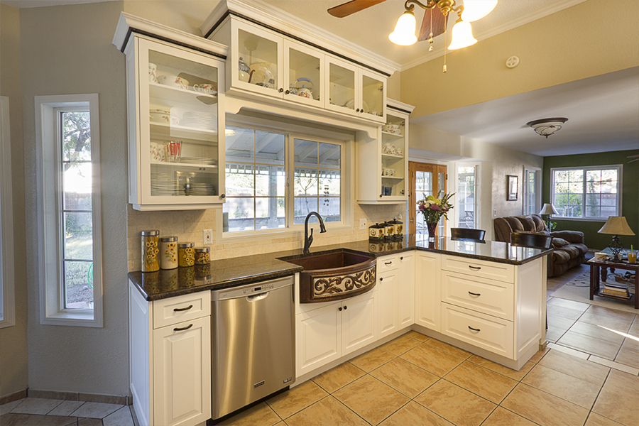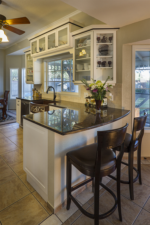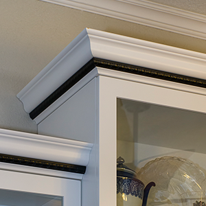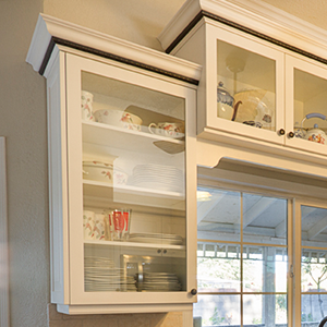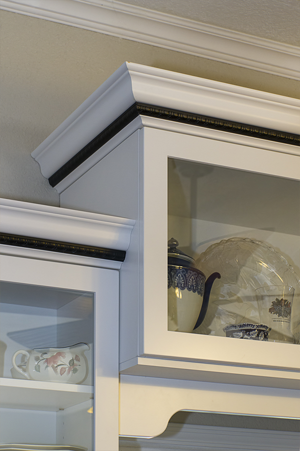 On a whim, after having already gotten 4 project bids, the owner who drove by our showroom every day on the way to and from work thought he would get one more bid. After connecting by email with his wife and getting a better sense of what she was trying to achieve, we went to town on working out the solutions to her spatial needs and selecting the finishes and styles that made the statement she was looking for. Being fifth in line to propose my design and pricing was a blessing and a curse. From cabinet company to company, similar concepts are offered but they aren’t always identical. She was sold on an upper cabinet that extended to the counter with two drawers, but the manufacturer I was proposing only offered this cabinet with one drawer or three – three was the final decision. The other cabinet companies weren’t able to offer a trash pullout in a narrow 12” space, but ours did, so we adjusted some dimensions around the sink so we could incorporate a trash pullout. Finally, she had selected an accent crown molding trim with a rope detail and of course my company didn’t offer rope, but they had egg and dart accent and so it went.