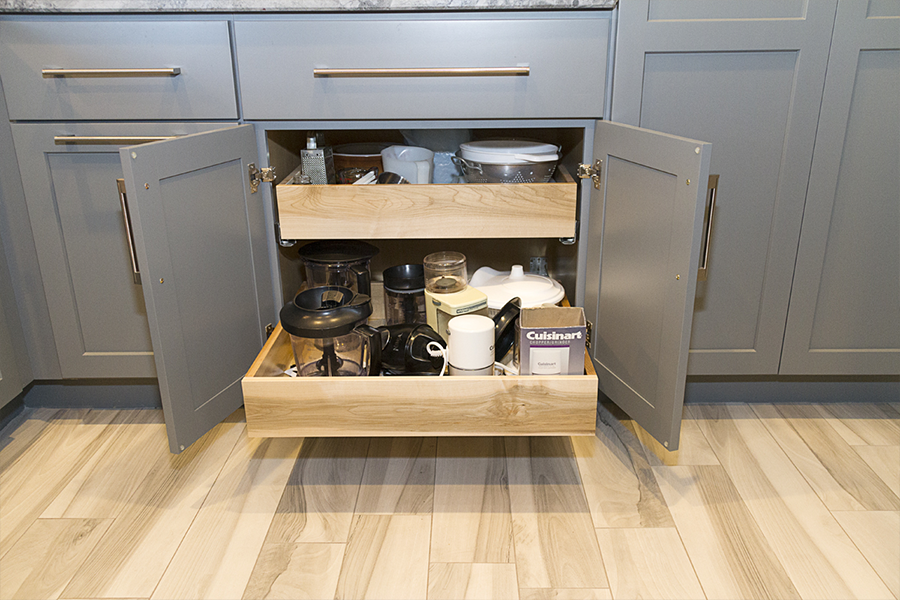 Next was the expansion. She had already commenced construction on pushing the living wall out to align with the kitchen nook. This allowed an additional three feet of storage and counter space and thus created a pass thru to make is easier to connect with guests in the living room while preparing food. The additional counter space on this side allowed an increase of pantry storage across the kitchen and a general improvement of accessibility and storage solutions were incorporated while leaving the appliances in their established locations. The end result achieved the balance she desired and it’s onto the next phase, enjoying the fruits of labor.