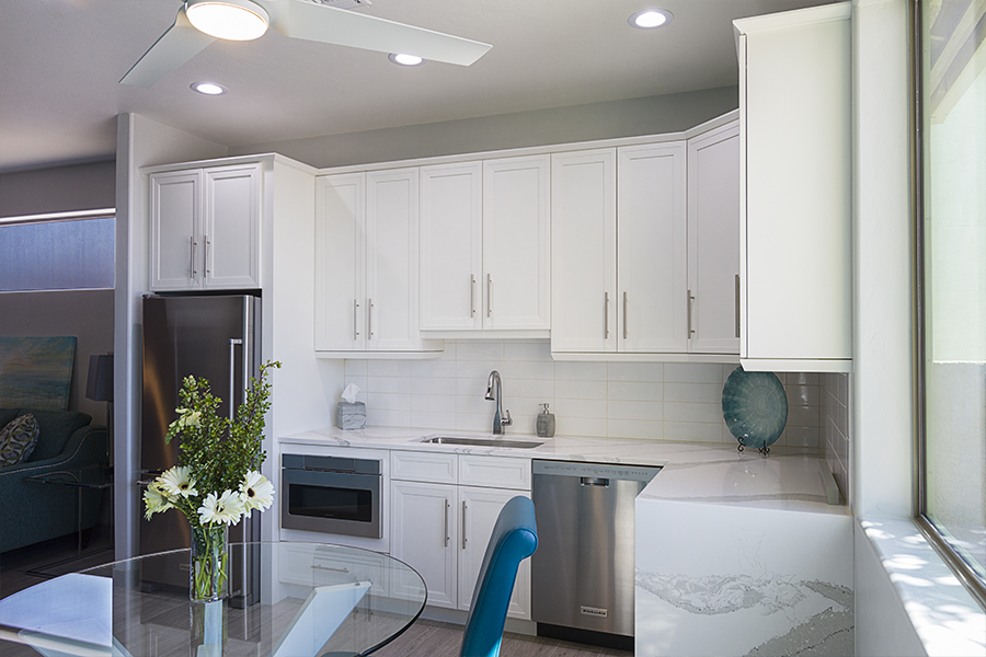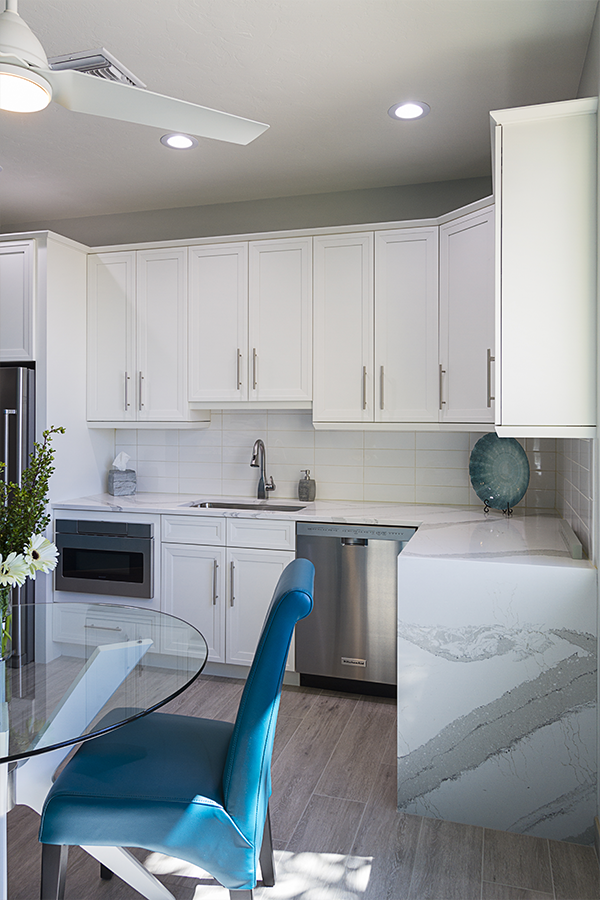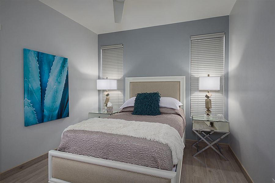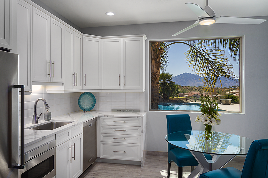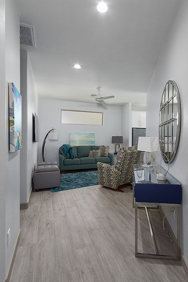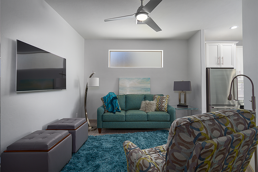 Departing from rich wood and primary colors in the main house, the owner selected a neutral grey/white palette to be accented with a pop of blue/teal found in the pool which was set-up for a perfect view in the dining area. The outcome achieved the three goals beyond our expectations!