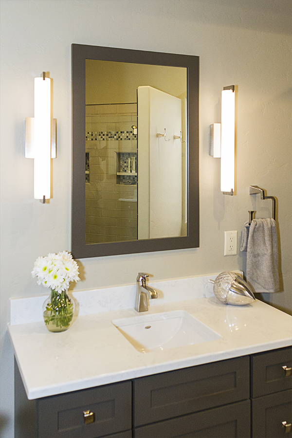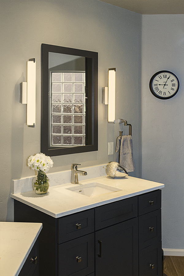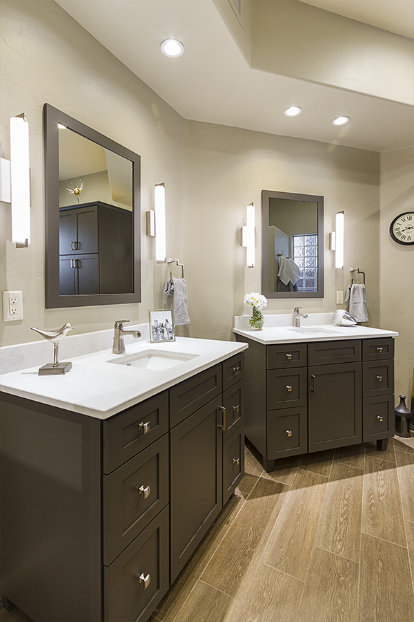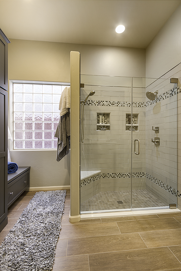 Phase one was the kitchen remodel where we had to stick to the footprint based on limited replacement tiles. Phase two was the master bathroom which had a threshold to cross that allowed me to present a complimentary material for the flooring so we could make real improvements and changes to the layout.