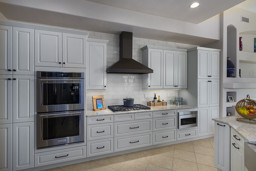 Three common components that seem to repeat in a remodel are: 1) Keep the existing floor 2) Maintain general layout of appliances and plumbing 3) Improve the look and function. That seems pretty-basic, it could tend to get boring, but clients love to be wowed with a small detail that makes all the difference in the world.